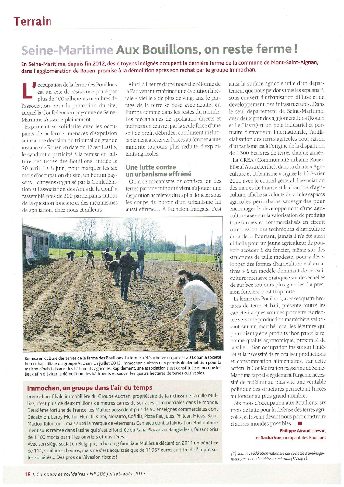 des Bouillons, contre l’urbanisation et pour l’agriculture de proximité.