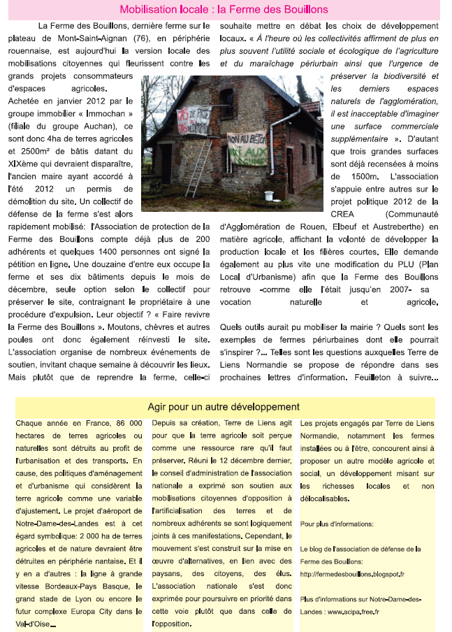 Article dans la lettre de Terre de Liens