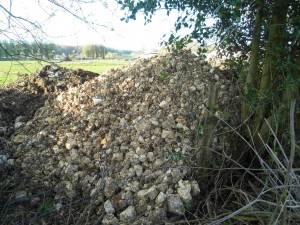 Depuis le mardi 28 mars 2017, plusieurs tracteurs remorques effectuent sans cesse des navettes entre le chantier des « Balcons du Houlme » et la Ferme Saint-Aignan, comme l’ont rebaptisée les Mégard pour effacer l’histoire du lieu. Ces remorques ont déjà déversé en 4 jours dans les champs de cette ferme des centaines de tonnes de matériaux divers : terres végétales mais aussi terres crayeuses, terres argileuses, cailloux, tuyaux, feutre bidim, troncs d’arbre, etc.