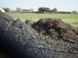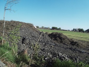 La raison de ce délai est simple : dès le samedi, les frères Mégard ont recouvert les remblais. Les tas de déchets de chantier (gravats de démolition extérieure) ne sont donc plus visibles, recouverts de déchets verts, broyats de végétaux. La preuve ci-dessous en images ! Les Mégard veulent faire croire que les gravats encore visibles sur le site (mis en scène) ne sont que les poteaux en béton de la ferme, remplacés par des poteaux en bois ! Forts différents des photos prises les jours précédents ! N’expliquant pas les nombreux passages (parfois une cinquantaine en une journée) durant près de quinze jours de camions dont les bennes étaient remplies de gravats !
