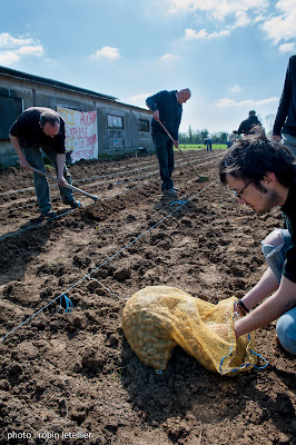 Récolte des pommes de terre (« Charlottes », « Belles de Fontenay ») plantées à la ferme le 20 avril dernier lors de l’événement « Semons contre l’expulsion », suite à l’avis d’expulsion des occupants de la ferme à la demande d’Auchan (pour lire notre communiqué de presse sur ce sujet, cliquez ici ou retrouvez nos articles autour du 20 avril sur le blog)