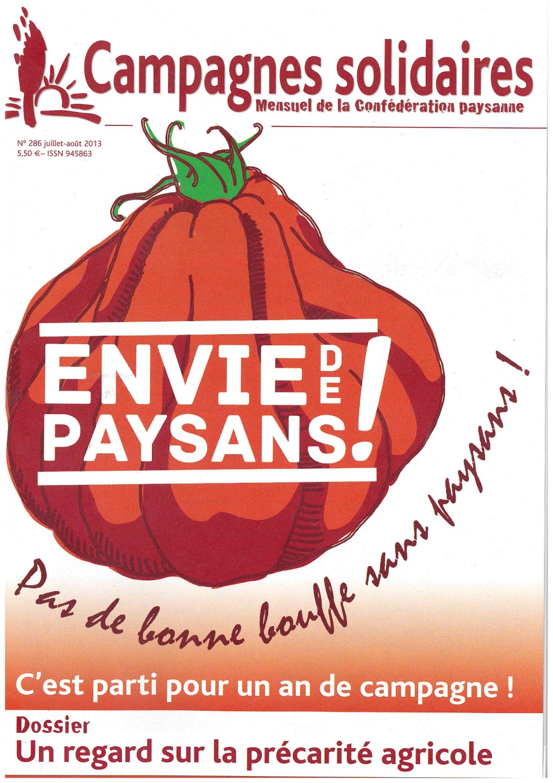 Campagnes solidaires n°286 de juillet et août, le mensuel de la Confédération paysanne, engagé avec les paysans et les acteurs du mouvement social, consacre une page entière dans sa
