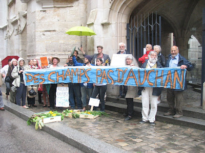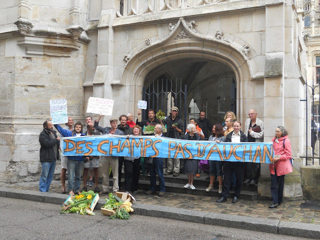 Nous sommes venus avec des légumes de la ferme au tribunal. Plus d’une quarantaine de membres de l’association de protection de la ferme des Bouillons étaient présents au tribunal pour afficher leur soutien à notre cause. Des journalistes de Paris-Normandie, Fil-fax et grandrouen.com étaient également présents.