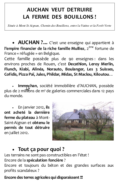 - En janvier 2012, ils ont acheté la dernière ferme du plateau à Mont-Saint-Aignan etobtenu le permis de tout détruire en juillet 2012.