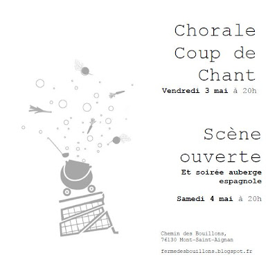 Attendue depuis le 18 janvier 2013, la chorale « Coup de chant » viendra chanter pour vous, ce vendredi 3 mai 2013 à 20h à la ferme.