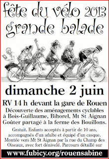 L’association SABINE organise une balade à vélo de découverte des aménagements cyclables des plateaux nord (13 km environ), dans le cadre de la Fête du vélo.