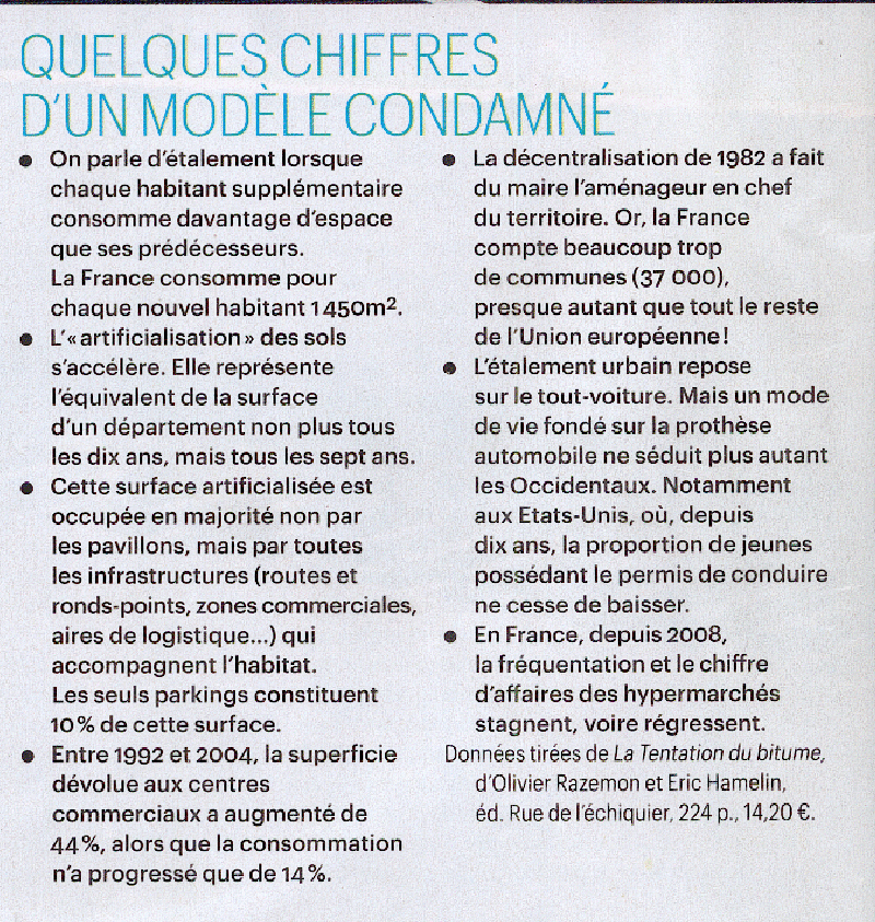 Etalement urbain Laisser un commentaire Extrait du Télérama du 28/08/2012 : Loin des villes UN REVE QUI TOURNE MAL La France périurbaine vue par Raymond Depardon, Gustave Kervern, Benoît Delépine, Olivier Adam