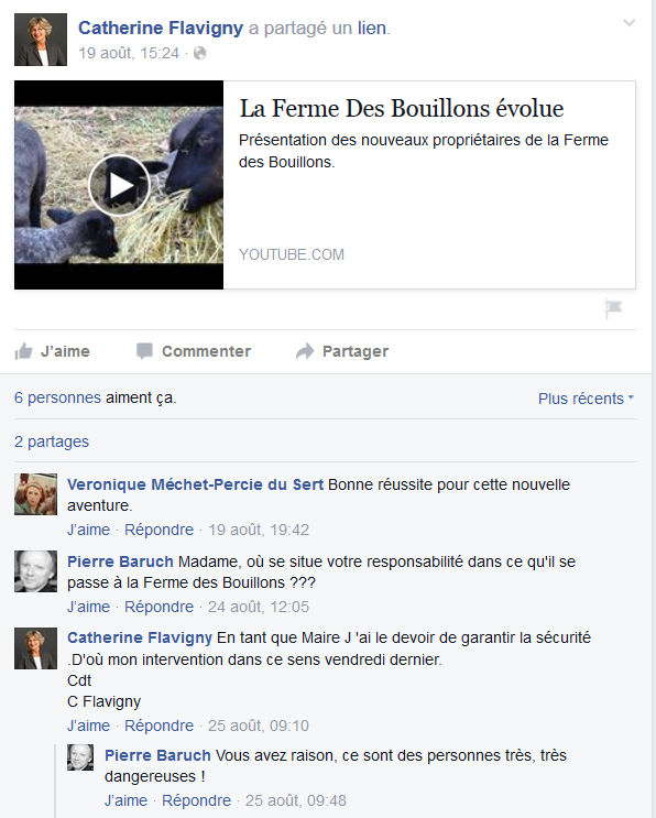 Catherine Flavigny, maire LR de Mont-Saint-Aignan, soutient l’installation des nouveaux arrivants et l’extinction du bouillonnement citoyen sur le territoire de sa commune, allant jusqu’à partager, le jour de l’expulsion, la vidéo autopromotionnelle et autoparodique des futurs propriétaires.