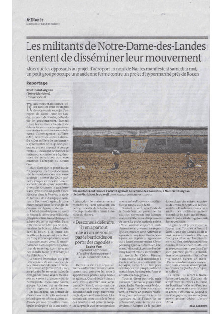 Un grand article en page 7 du quotidien Le Monde, rubrique « société », cela n’arrive pas tous les jours ! Preuve que le sujet que nous défendons trouve un écho au niveau national.