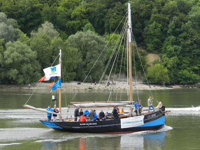 Dimanche 16 juin, la grande parade des voiliers quittant Rouen et suivie par des centaines de milliers de personnes ne nous a pas fait de tort. L’un des premiers bateaux à quitter le quai et à ouvrir le cortège, Marie-Madeleine, un cordier dundee de Barfleur de 1934 classé monument historique depuis 1984 et immatriculé à Cherbourg, arborait nos couleurs. Une magnifique banderole « Sauvons la ferme des Bouillons » tendue sur sa coque a été vue depuis la rive droite le long des 125 km qui séparent le port de Rouen de l’estuaire. De nombreux groupes de spectateurs ont manifesté bruyamment et joyeusement leur soutien en vue de cette saine manifestation nautique pour l’agriculture périurbaine à Rouen. Merci à l’équipage et merci à eux !