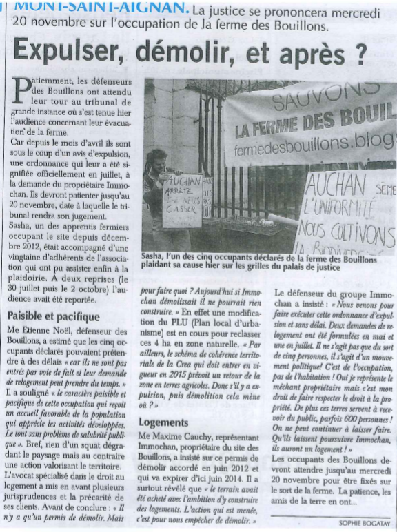 Après deux reports, l’audience de l’appel de cette décision d’expulsion, rejetée par les occupants de la ferme, s’est déroulée mercredi 23 octobre 2013 au Palais de justice de Rouen.
