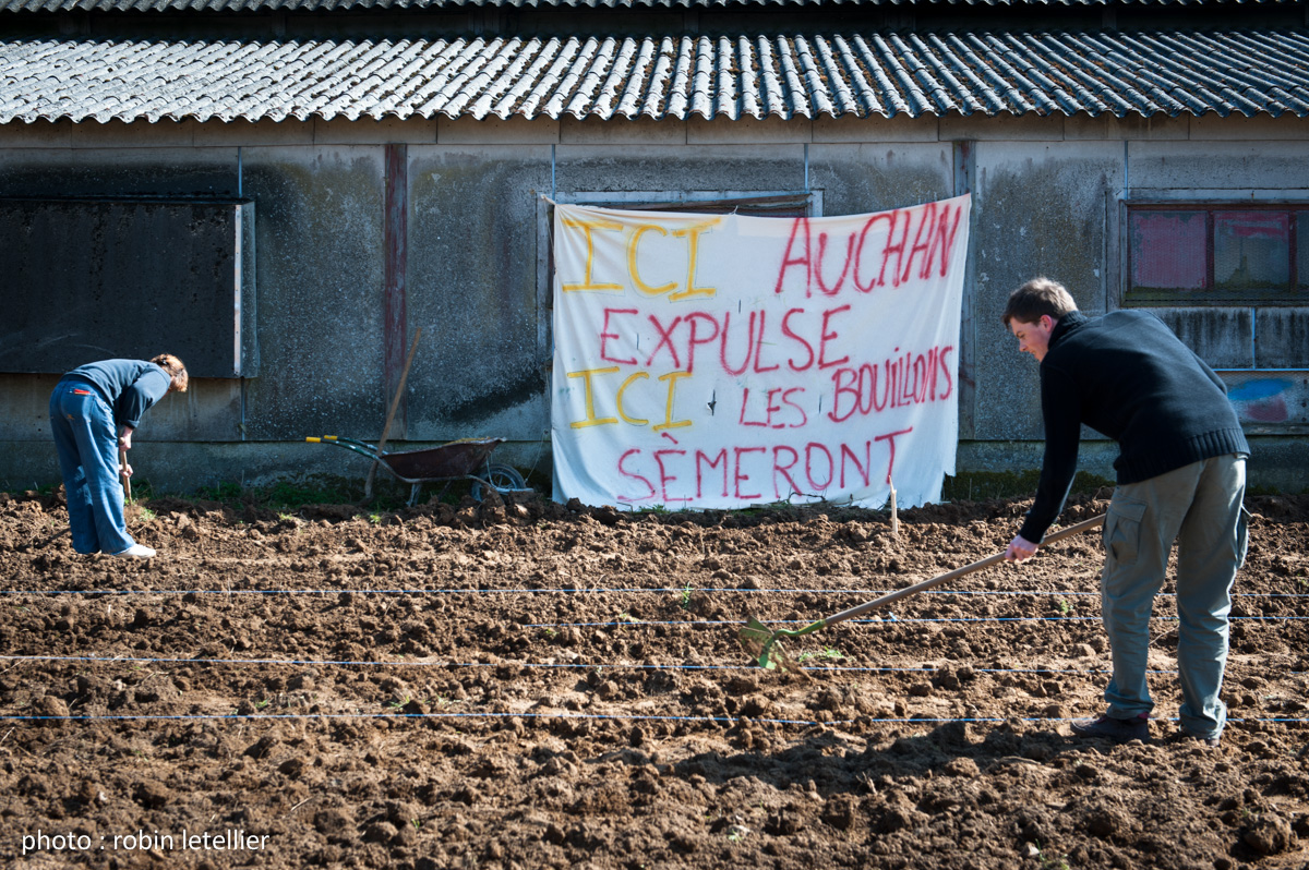 Récolte des pommes de terre (« Charlottes », « Belles de Fontenay ») plantées à la ferme le 20 avril dernier lors de l’événement « Semons contre l’expulsion », suite à l’avis d’expulsion des occupants de la ferme à la demande d’Auchan (pour lire notre communiqué de presse sur ce sujet, cliquez ici ou retrouvez nos articles autour du 20 avril sur le blog)